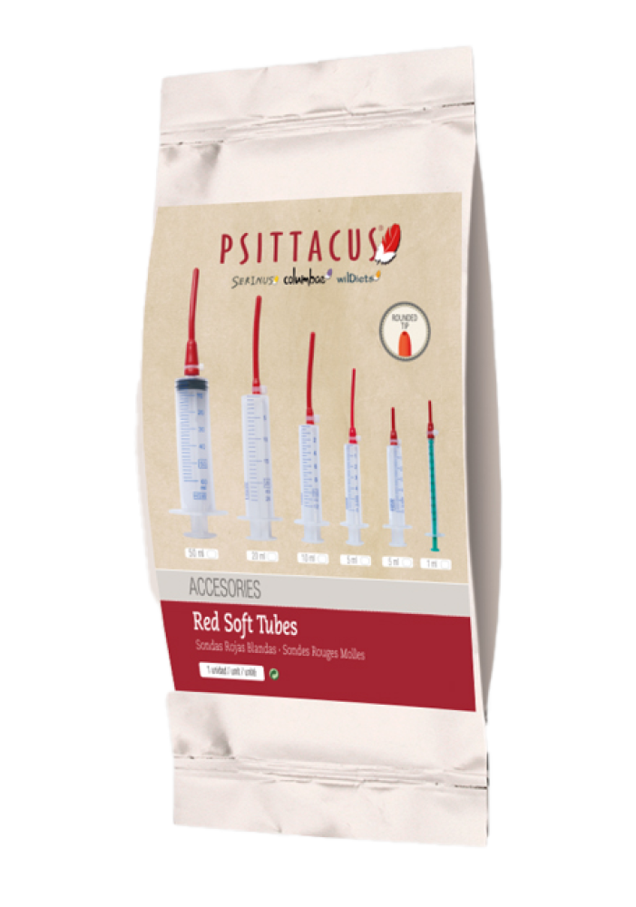 وبالتالي، على سبيل المثال، بالنسبة للببغاوات الرمادية الأفريقية، فإن الأنبوب الناعم سعة 5 مل مناسب لإعطاء تركيبة التغذية اليدوية للأطفال حتى عمر 7 أيام. يعتبر أنبوب التغذية الناعم سعة 10 مل مثاليًا للببغاوات الرمادية الأفريقية حتى عمر 14 يومًا؛ إن 20 مل للكتاكيت حتى عمر 4 أسابيع ومن عمر الشهر ينصح باستخدام أنبوب التغذية الناعم سعة 50 مل.